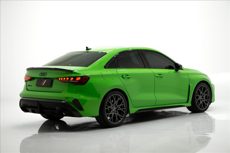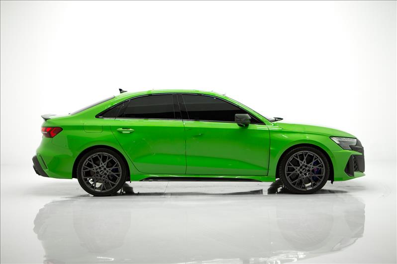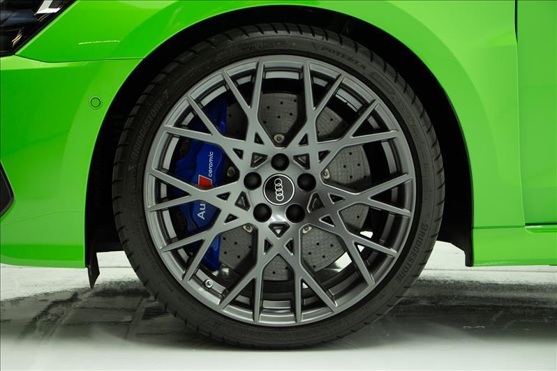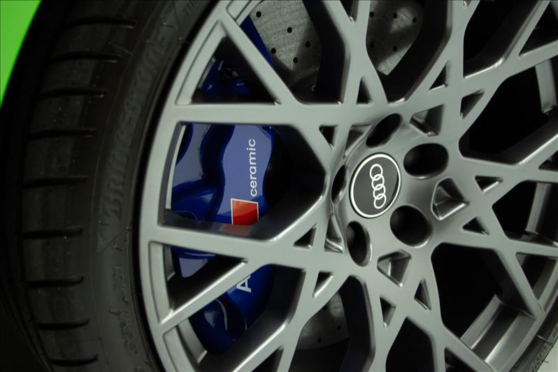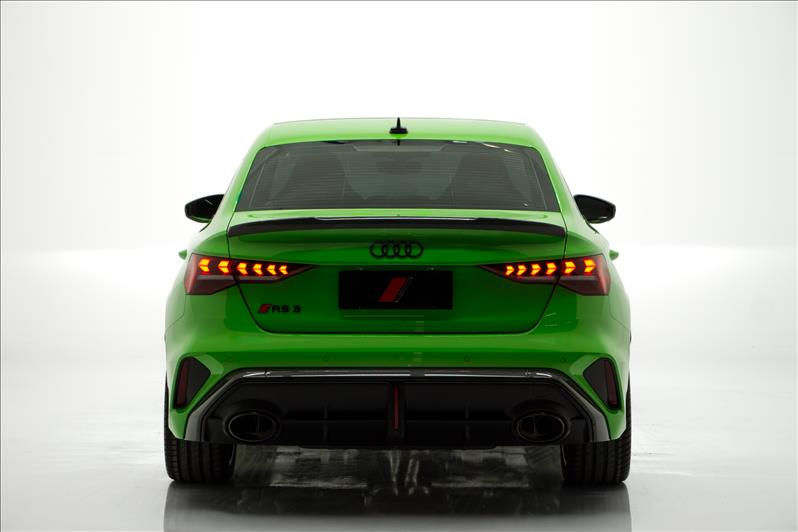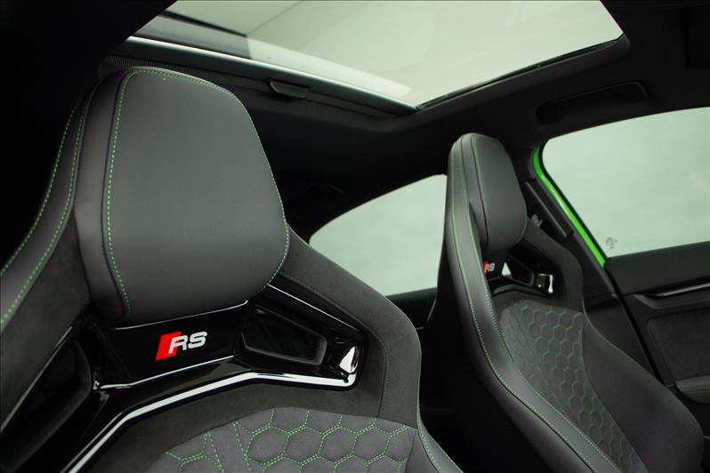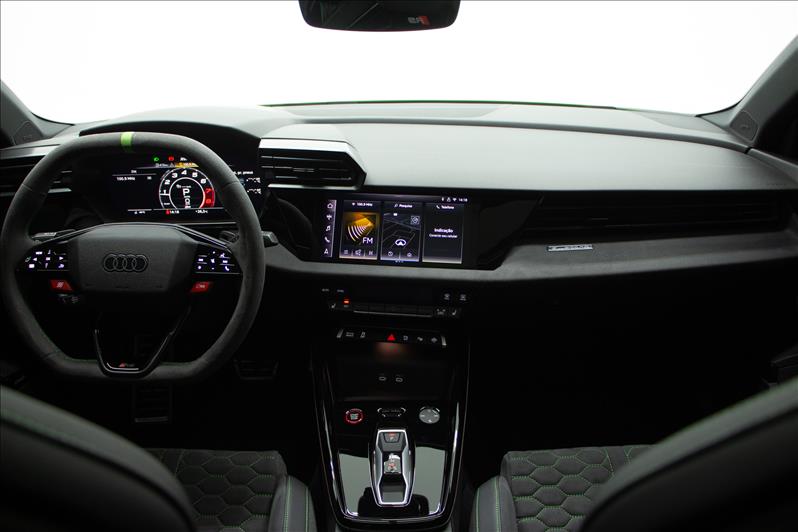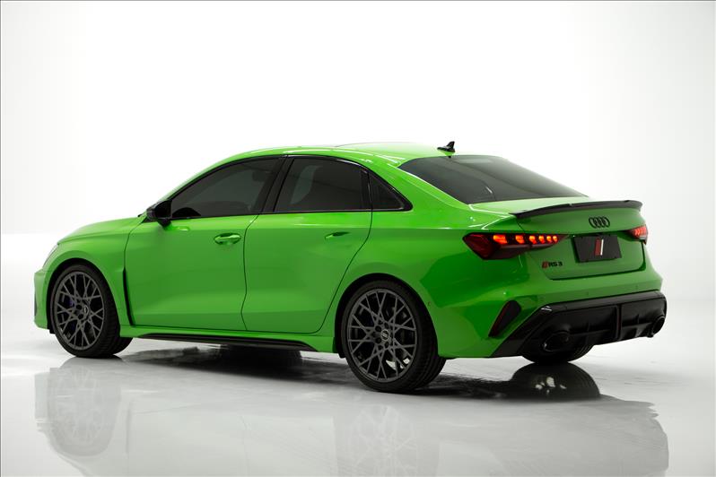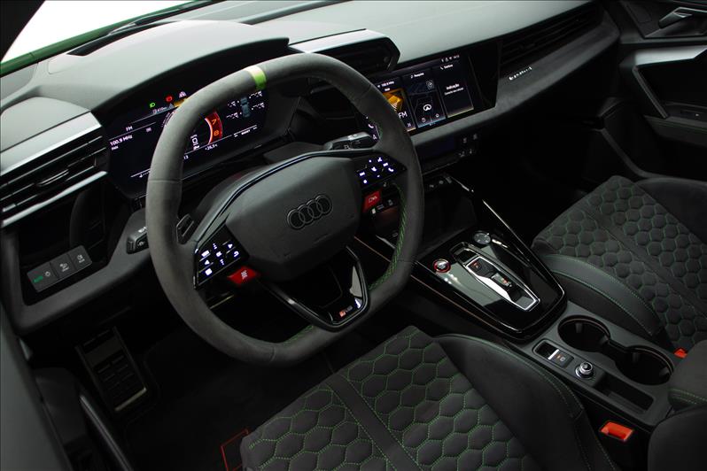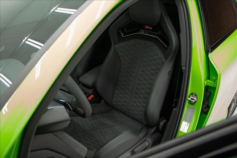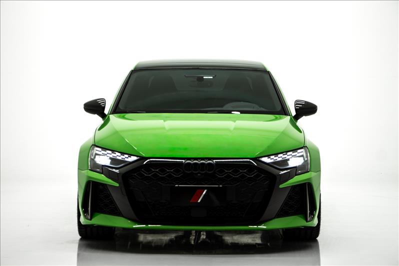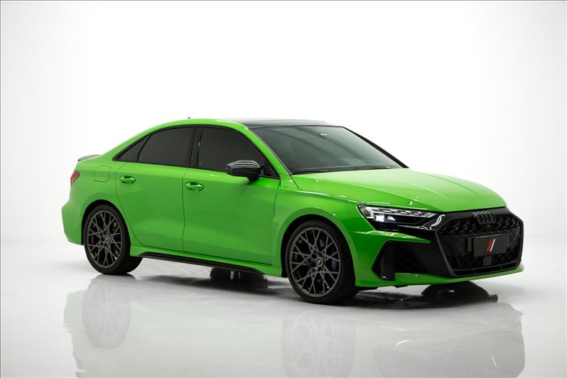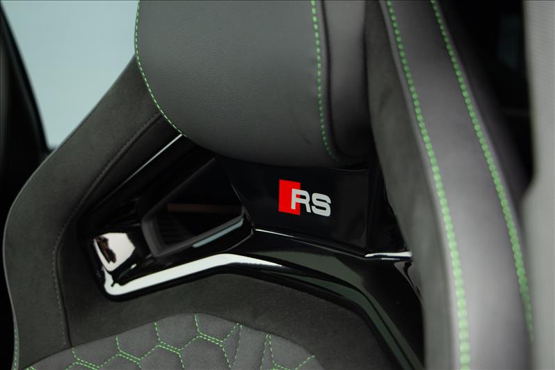 cor Kyalami Green, 2.5 TFSI de 5 cilindros 399 cv, tração quattro, câmbio S tronic, modo RS Performance, suspensão adaptativa, Virtual Cockpit Plus, faróis Matrix LED