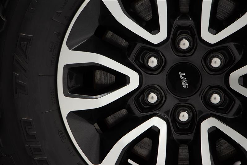 V8 6.2 aspirado, suspensão FOX Racing Shox, tração 4x4 com diferencial eletrônico e pacote off-road SVT Raptor.