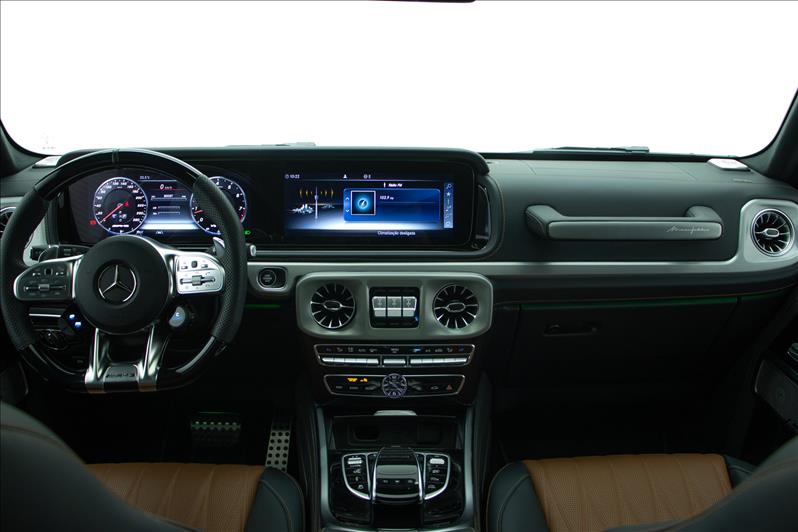 BLINDADO BLINDARTE (AGP IB33), Motor V8 biturbo, câmbio automático, tração 4x4, suspensão AMG Performance, modos de condução Dynamic Select, interior em couro premium, bancos elétricos com memória e aquecimento, volante AMG multifuncional, central multimídia com GPS, som premium, câmera de ré, sensores de estacionamento, controle de tração e estabilidade, freios ABS, múltiplos airbags e faróis Full LED.