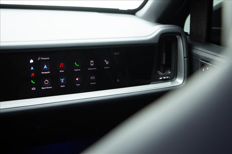 Blindado Carbon, Cayenne Coupé E-Hybrid 470cv AWD, teto panorâmico, interior em couro com acabamento premium Porsche, multimídia PCM, painel digital curvo e pacote completo de assistências.